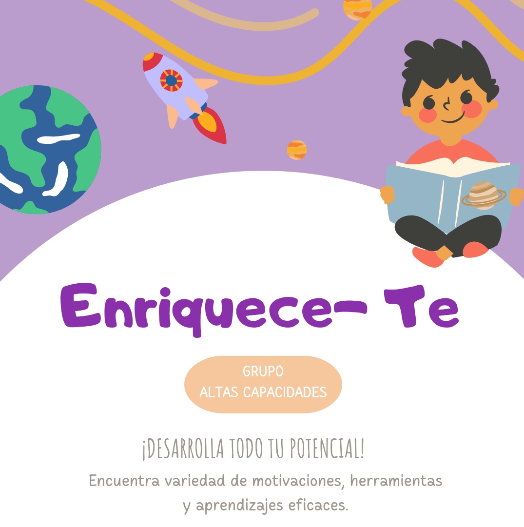 Enriquéce-te nace de la motivación de dar una respuesta adaptada a las necesidades de niños y niñas con perfiles de alta capacidad. Los objetivos que persigue este proyecto son los de potenciar y beneficiar las capacidades, conseguir una mayor adaptación social y encontrar variedad de motivaciones y herramientas de aprendizaje eficaces.